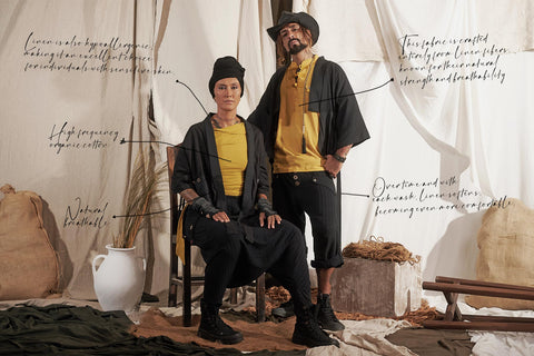 The new unisex Kinship Short Kimono (pictured above) is adorned with an ethno-punk pattern, expertly crafted using the batik stamp technique- ensuring each kimono is a unique work of art.