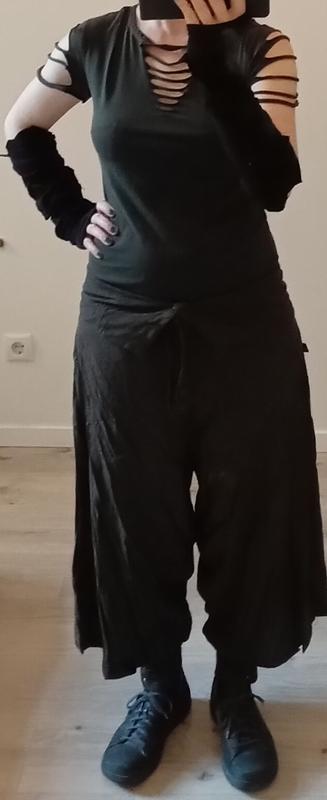 This is a great top and a perfect new addition to my Psylo collection. The side “straps”? On the sleeve area will roll up a bit and become more like thin round cords and not flat straps, but that’s what I expected and it still looks and feels great. Again, this stuff makes me feel sexy!