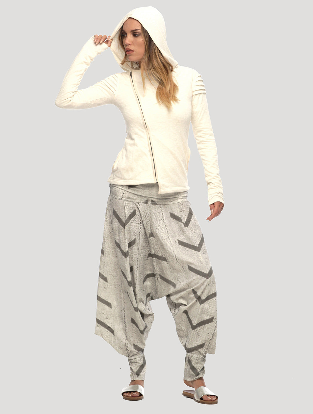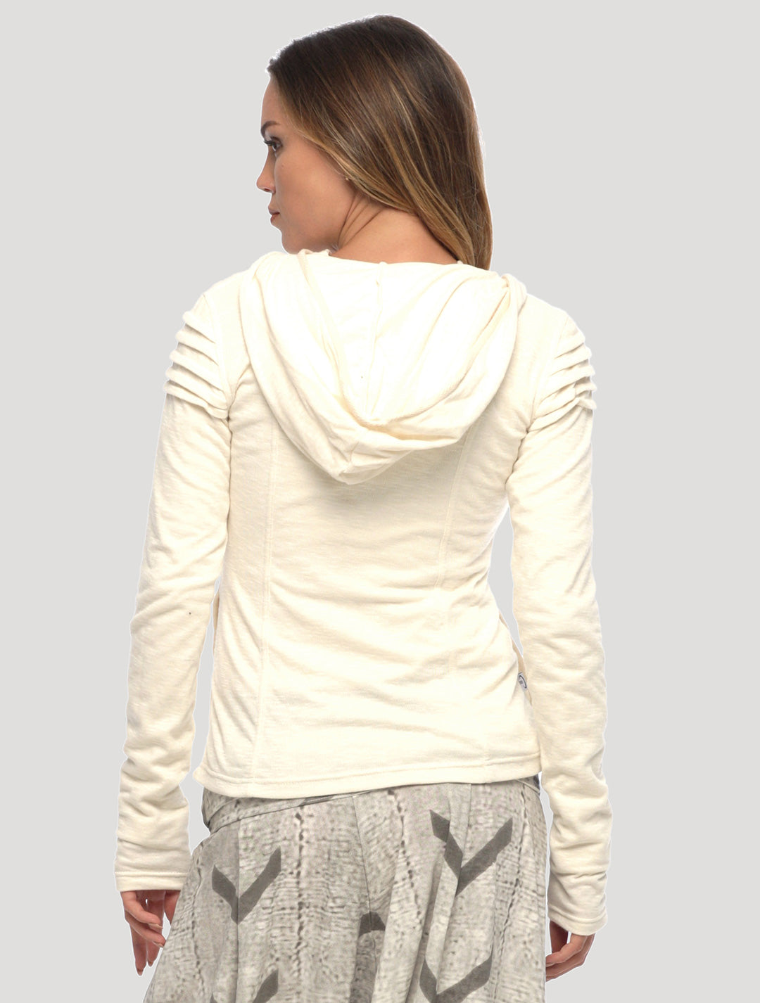 Asymmetrical hooded jacket. A great everyday layer, with just the right amount of detail. Will keep you cozy in an edgy street style.