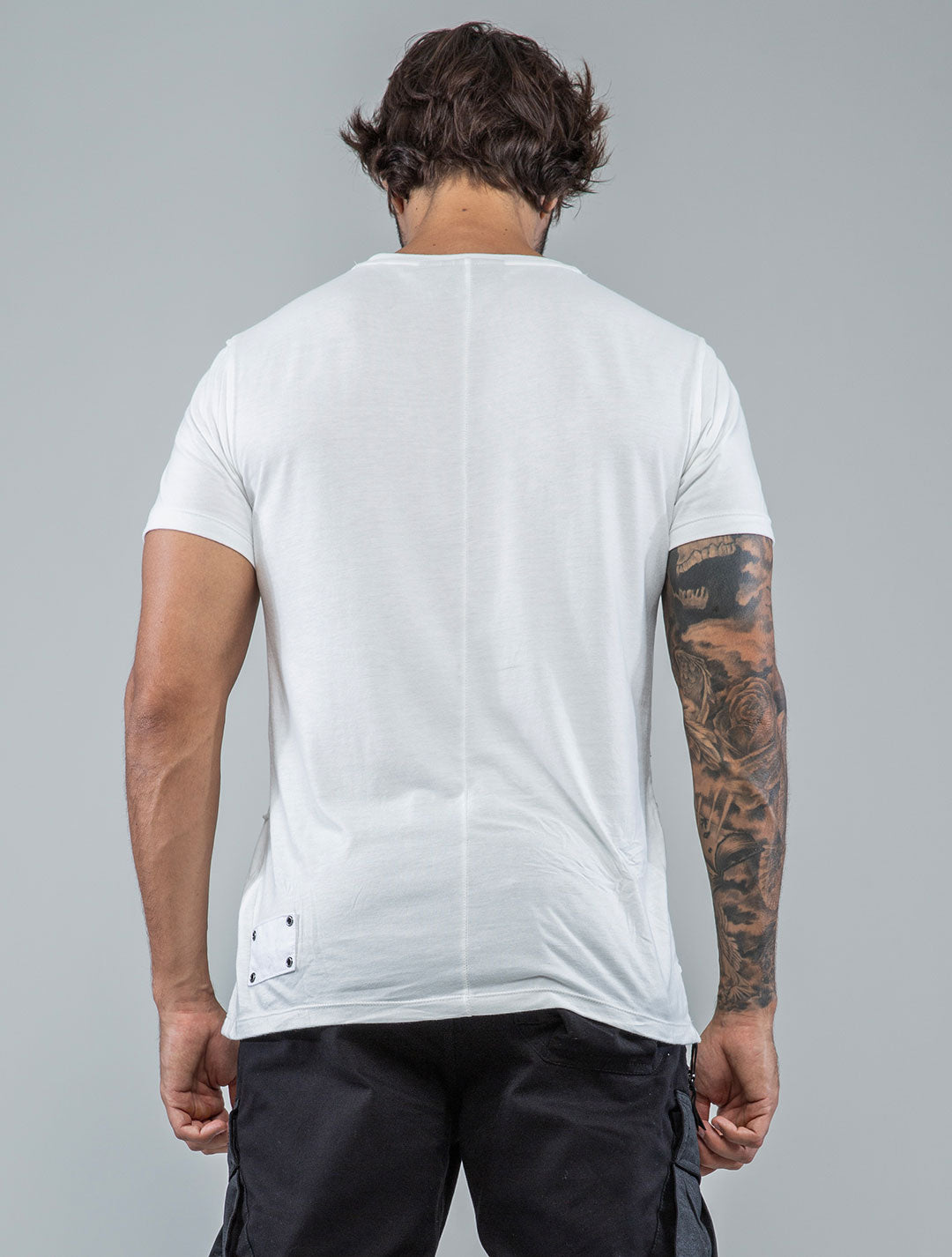 Inspired by legendary UK Punk band Sex Pistols — an emblem of disruption and noise. This is the Anarchy Tee: a slim-fitted, and made from a soft cotton-bamboo blend. It features A selffabric Union Jack appliqué which sits on the front, with edges left raw for that authentic punk abrasion. The back bears Psylo’s signature ladder stitch, seasonal twill patch with tarnished metal eyelets, and the Psylo “P” loop label at the side seam. Intentional imperfections meet considered construction