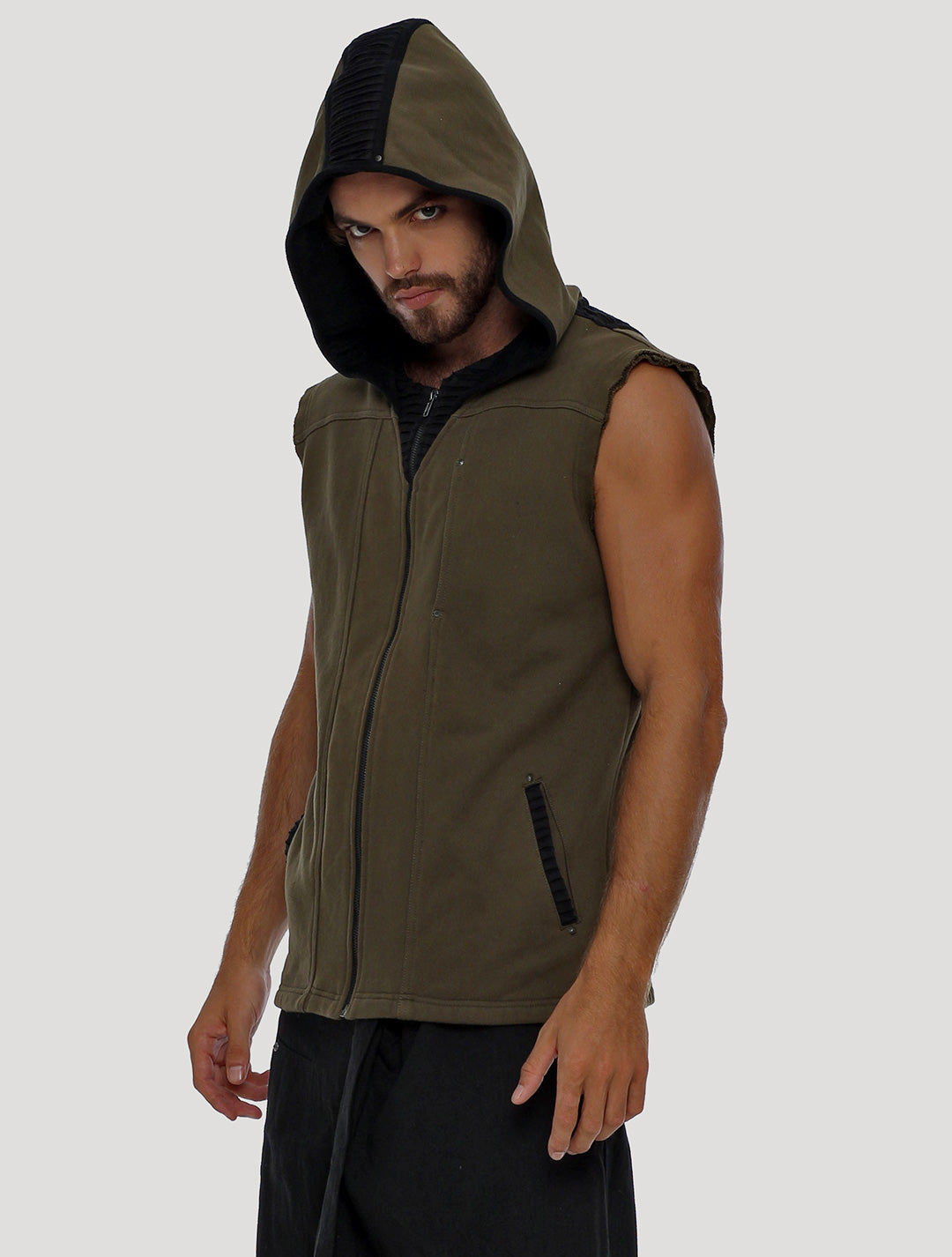 This hoodie vest is full of handmade details. Perfect for when you want to keep warmer, in an edgy style.