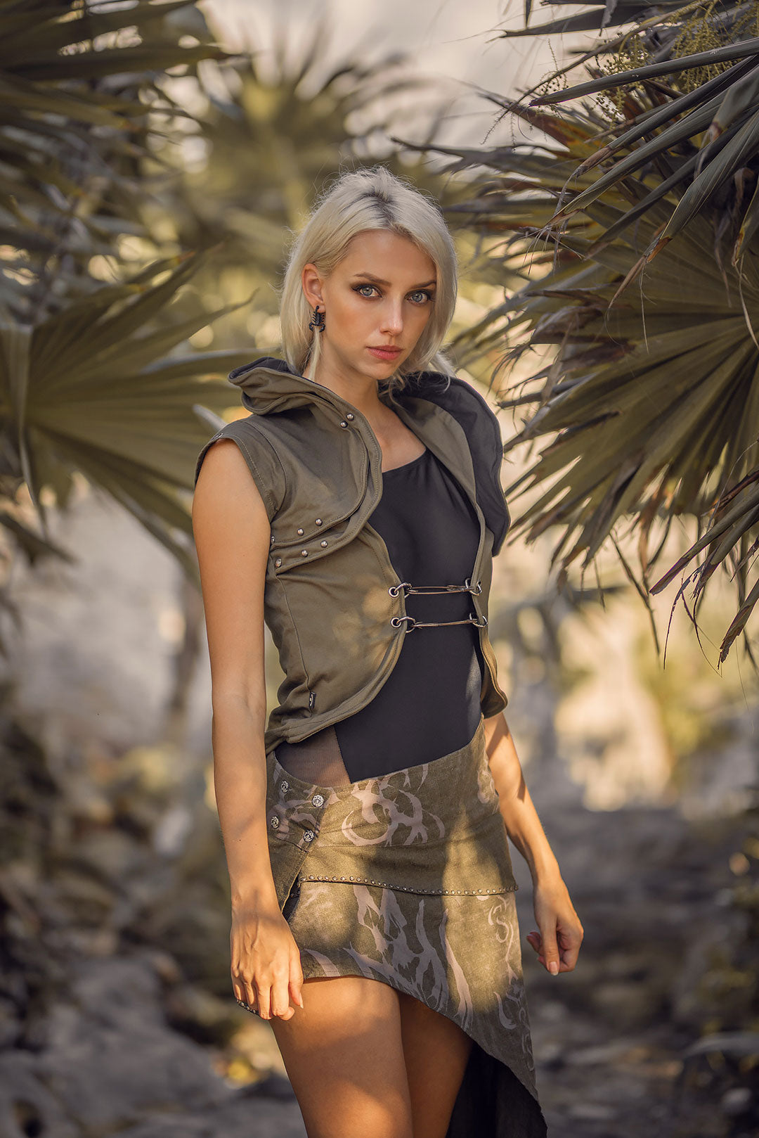Stand out in this edgy skirt. On its own, or over leggings, this is a super easy-to-wear skirt, for your glamorous look in a post-apocalyptic style.