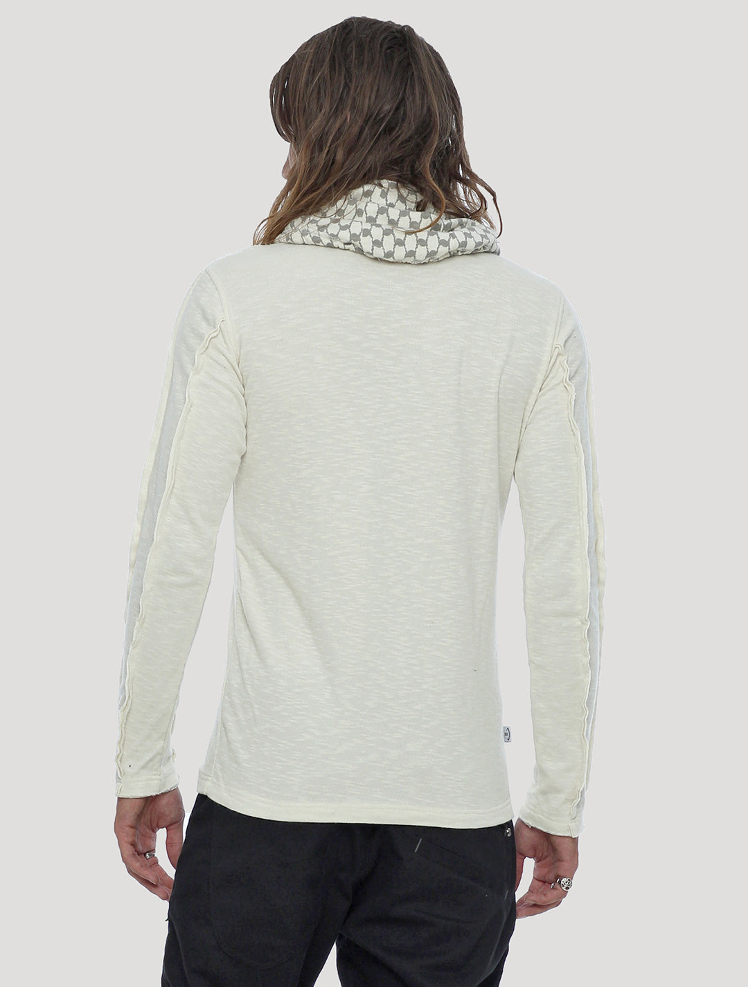 The alternative jumper to keep you warm in an edgy style. The long turtleneck can be worn as a hoodie. Very down-to-earth style with subtle, ethnic checker-prints.