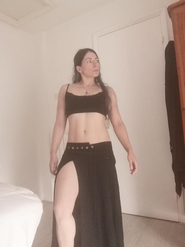 This is my favourite (summer) skirt. I have it in all 3 colours so I can wear one whenever I like and with all possible tops. I love the beautiful A line shape that flatters wider hips, the long Maxi cut and the adjustable belt. It can be worn either on the waist or on the hips. It is lightweight but not too thin, not too baggy and not too clingy. It has a good shape and a nice flow while you move. It' simply perfect. I don't really use the straps but I think they are good to have, too. I recommend this skirt to anyone who likes a Maxi Skirt style in really great quality and sophisticated style.