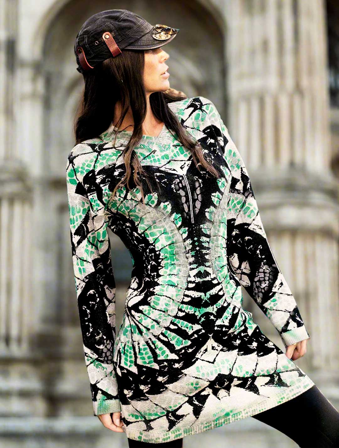 Ouroboros Oversized Knit Dress is a limited edition design inspired by the mystical power of the Ouroboros symbol (a serpent eating its tail). Symbolising the unity of all things, the perpetual cycle of destruction and re-creation, and eternity. Crafted from organic hemp, this unique dress embodies the connection between self and nature, radiating beauty and spiritual transcendence. The ouroboros with its cyclical shedding of skin, symbolizes continual renewal. It encourages us to view endings as opportunities for new beginnings and to embrace the journey of healing