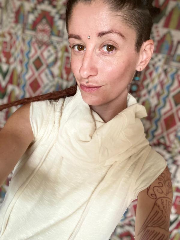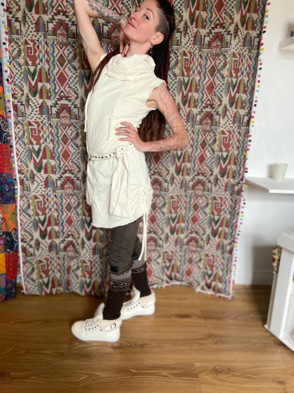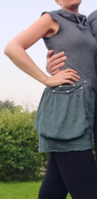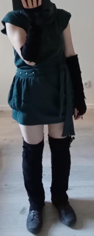 This dress' silouhette is really cool. It has a nice structured cut that accentuates the waist and flares a bit at the hips which creates a beautiful hourglass shape. I also like the thick fabric that is not clingy. However, I see a few downsides that make it a bit impractical for me. There is the super large pocket, that cannot be closed and looks bulgy. The cut is too tight in my opinion so that it feels restricting. The bigger size, however, is too baggy. Finally, I find the large scarf too warm in the sun or inside a club. I would therefore recommend this to ladies who like the look if this dress and are maybe willing to sacrifice a bit of functionality.