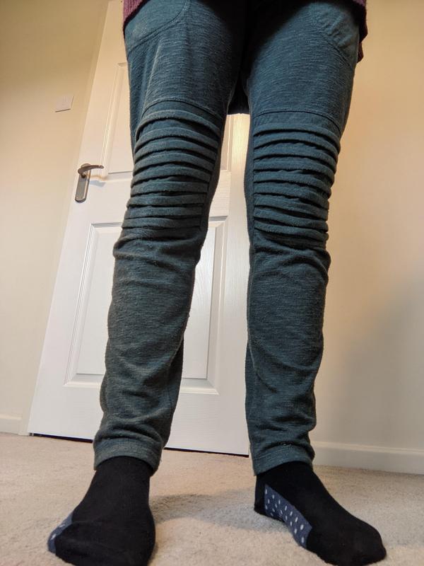 I absolutely love these leggings/bottoms. They are incredibly comfortable and fit perfectly. I'm a uk size 10 and bought a size 2 so they sit ever so slightly loose. They don't 'knee' and they are a modern stylish version of a tracksuit bottom. They look great with a simple t shirt and leather jacket or can be matched with a psylo top. I've bought two colours now! Fit true to size.